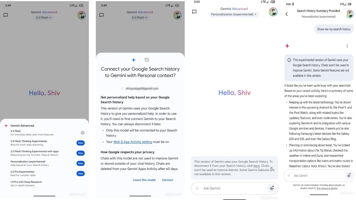Android Authority tarafından aktarılan bilgilere göre yeni kişiselleştirilmiş Gemini modelinin arama geçmişine erişimi olacak. Aşağıdaki ekran görüntüsünden de görülebileceği üzere arama geçmişine göre yardım sağlayabileceği belirtiliyor.