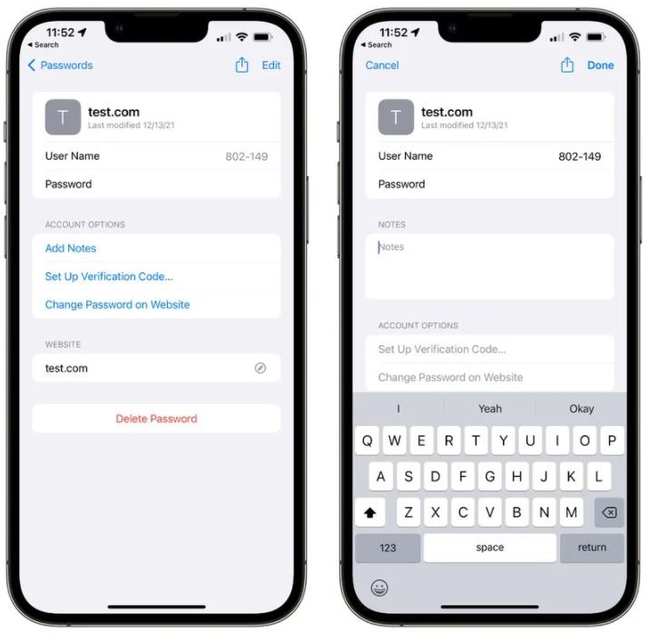 ‌iCloud‌ Anahtar Zinciri kullanıcıları artık herhangi bir şifre girişine not ekleyebilir. Bu da ‌iCloud‌ Anahtar Zincirini “1Password” gibi diğer şifre saklama seçenekleriyle daha uyumlu hale getirir. ‌iPhone‌ ve ‌iPad‌’de ‌iCloud‌ Anahtarlık’a Ayarlar uygulamasında “Parolalar” altında erişilebilir.