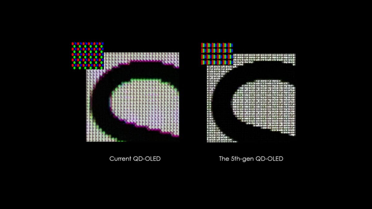 5. nesil QD-OLED panel, Tandem OLED teknolojisiyle birlikte RGB şerit alt piksel dizilimini kullanıyor. Bu yerleşim sayesinde renk dağılmalarını azaltıyor ve metinlerin çok daha belirgin olmasını sağlıyor.
