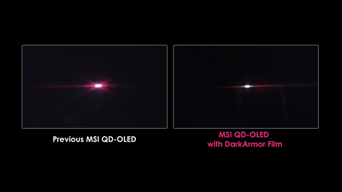 Bu monitörler, DarkArmor Film teknolojisi sayesinde , ortam ışığından kaynaklanan renk bozulmalarını minimuma indiriyor. Siyah seviyelerini %40 oranında iyileştirerek görüntü kalitesini en üst noktaya taşıyor. Üstelik panel yüzey sertliğini 3H’ye yükselterek MEG X ve MPG 341CQR modellerine günlük kullanımdaki çizilmelere karşı 2.5 kat daha yüksek bir koruma sağlıyor.