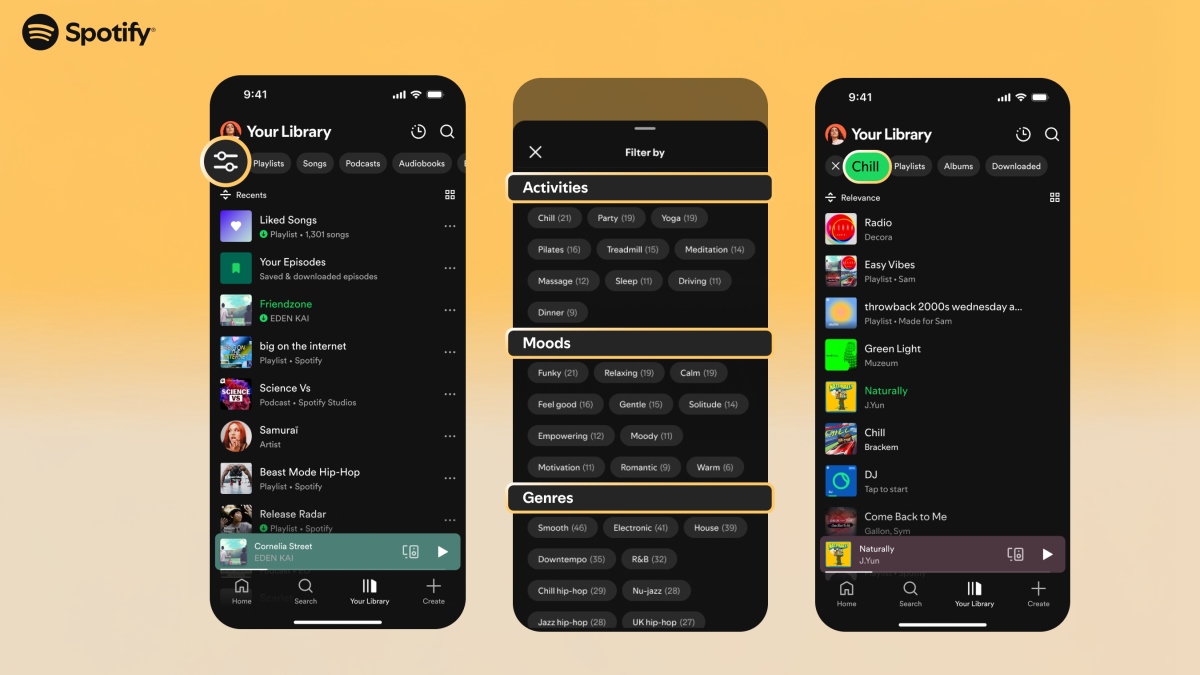 Spotify, kullanıcıların dinlediği şarkıları daha fazla kişiselleştirmesini sağlayacak yeni özellikler sunuyor. Şirket, kullanıcıların kitaplıklarını belirli aktivitelere, ruh hallerine veya türlere göre filtrelemelerine imkân sunan yeni bir özelliği kullanıma açıyor.
