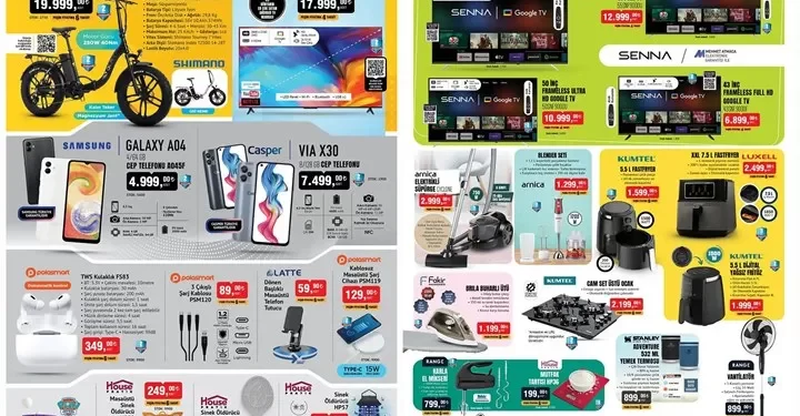 Türkiye’nin market zincirlerinden BİM, 28 Haziran tarihli aktüel ürünler kataloğunda tüketicilere çeşitli teknolojik ürünler sunuyor. Kataloğun öne çıkan ürünleri arasında Ola markalı katlanabilir elektrikli bisiklet, Samsung Galaxy A04 akıllı telefon, TCL 55 inç Ultra HD akıllı TV ve Casper VIA X30 akıllı telefon yer alıyor.